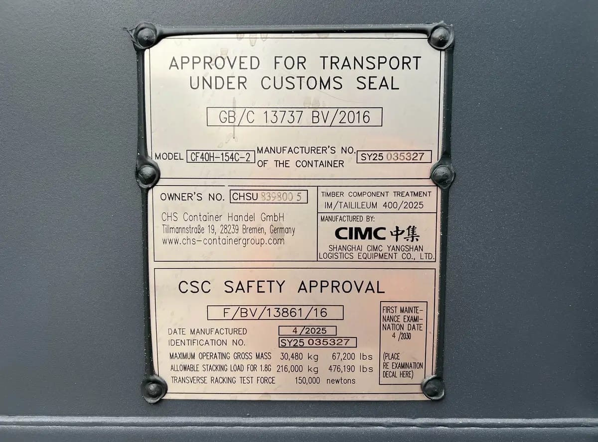 Spacious and robust High Cube container. Extra height is very practical, and the container is in excellent condition.